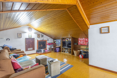 No rés-do-chão, destaca-se a zona social em open space, onde sala e cozinha se ligam de forma fluida, criando um ambiente amplo e luminoso. Este piso integra ainda WC de serviço, despensa, lavandaria e uma garagem com 35,50 m², ideal para estacionamento e arrumação.